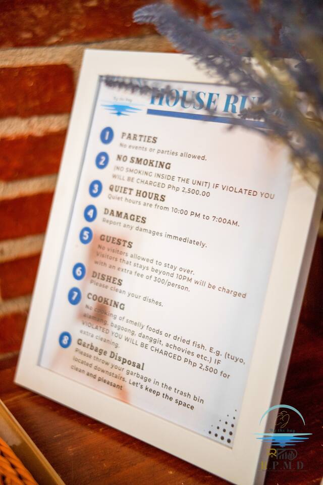 IMPORTANT! 1.) Please let us know the exact number of guest that will be arriving. 2.) This is a Self checkin unit the door code will be sent to you before your checkin date. 3.) We apologize but PETS are not allowed on our CJ by the Bay units. 4.)Laundry service is available with a fee. 5.)Visitors staying beyond 10pm will be charged with 400per head. 6.) Extra Mattress can be requested with a fee of Php300 per day per mattress. 7.) NO SMOKING IN THE UNIT. You will be charged with ₱2,500 which will be used for cleaning if you violate this rule. 8.) Early check-in and Check-out are subject to room availability with a fee of Php150 per hour. 9.) If there are any damage / issue that occurred during your stay. PLEASE REPORT TO US IMMEDIATELY. 10.) There is a Php2000 charge for lost/damaged key fob. Iron and Iron Board is available and you may request for it and we will deliver it to you. NOTE: The unit has a loft and children's are not recommended to play there to avoid injuries or falling. If you need any additional information, please do not hesitate to ask. We'd be happy to answer any questions you may have.