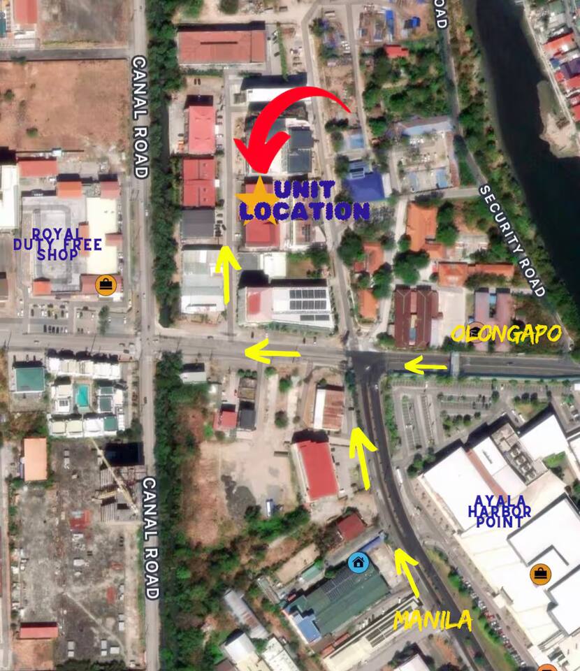 Loft-type unit perfectly located in the heart of Subic Bay. Located at Ground Floor for Easy Access and just a few minute's walk to Shopping Malls and Duty-Free shop. You'll find yourself surrounded by hospitals, banks, popular bars, and recommended restaurants, making it an ideal spot for convenience and entertainment. -All furniture's and appliances are new and well maintained. -Bedsheets, Towels, and Toiletries are provided -Fully equipped kitchen and dining. Places of Interest: Victory Gym - 10meters, 1min. walk Ayala Mall - 450meters, 5min. walk Royal Duty Free - 250meters, 4min. walk Magic Lagoon Bar - 1.5km, 5min. drive Subic Boardwalk - 600meters, 2min. drive Subic Light House - 900meters, 3min. drive Pier one Bar and Live music - 550meters, 2min. drive Subic Bay Yacht Club - 1.3km, 4min. drive White rock beach - 7.3km, 14min. drive Baloy Beach - 6.3km, 14min. drive All Hands Beach - 10.6km, 18min. drive Camayan Beach - 20km, 30min. drive Adventure Beach Waterpark - 20km, 30min. drive Zoobic Safari - 19km, 30min. drive Ocean Adventure - 21.1km, 31min. drive RESTAURANTS: Cocolime - 1.2km, 4min. drive Extremely Xpresso - 1km, 1min. drive Texas Joe - 1km, 2min. drive Seoul Korean Resto(Korean) - 650meters, 2min. drive Bulgogi House - 900meters, 2min. drive Golden Dragon (Chinese) - 1.3km, 4min. drive Sakura (Japanese) - 650meters, 3min. drive Gerrys Grill (Bar and Grill) - 1.4km, 4min. drive The Coffee Shop (Giant Tacos) - 4.7km, 10min. drive